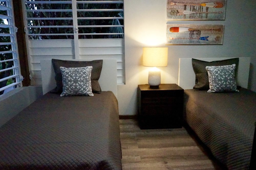 - 2 rooms (1 Master Room w/Queen Bed & 1 Room with 2 Twin Bunk Beds)