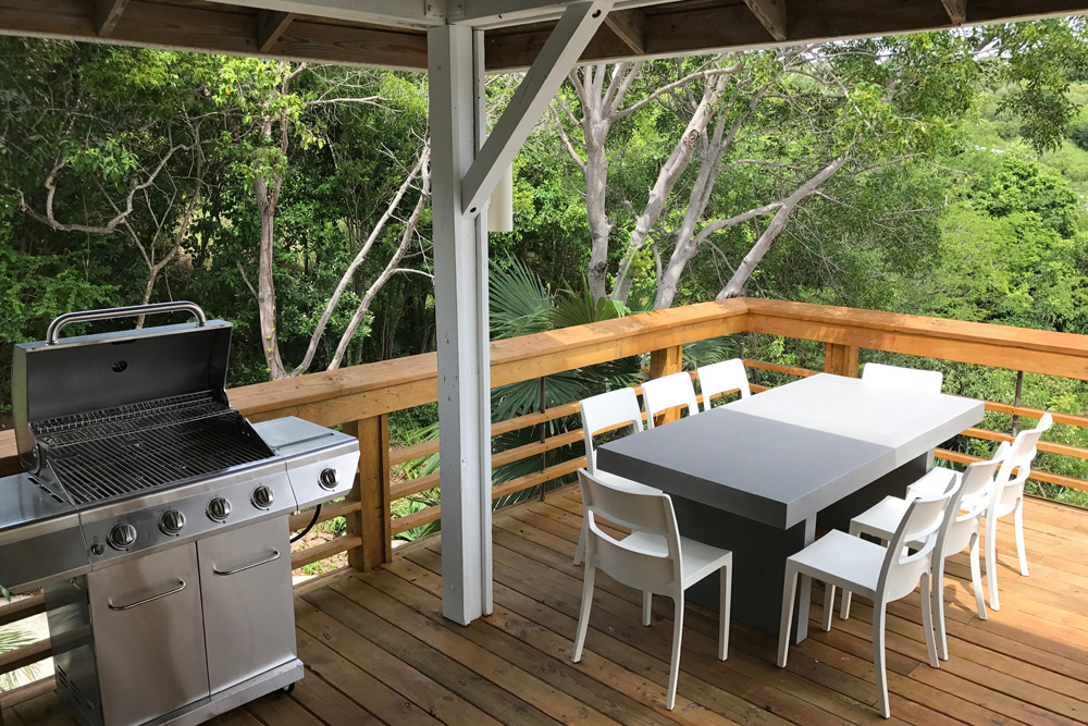Each of the Villas have private parking and the complete villa offers a private driveway. There is an area of the house that is prepared for laundry area for the use of the three villas. Also outdoor showers are available.
